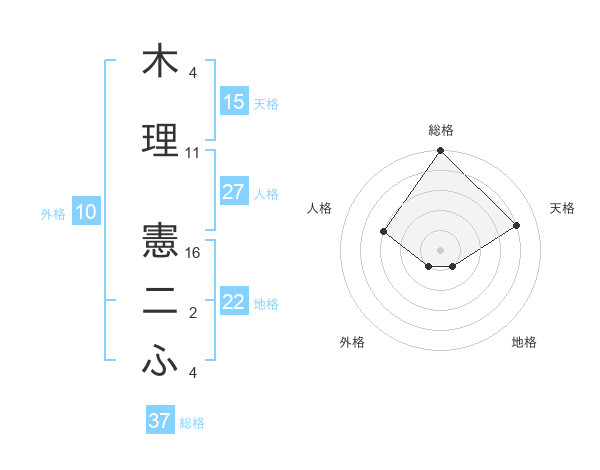 木理 憲二ふさんを姓名の画数から五運を鑑定