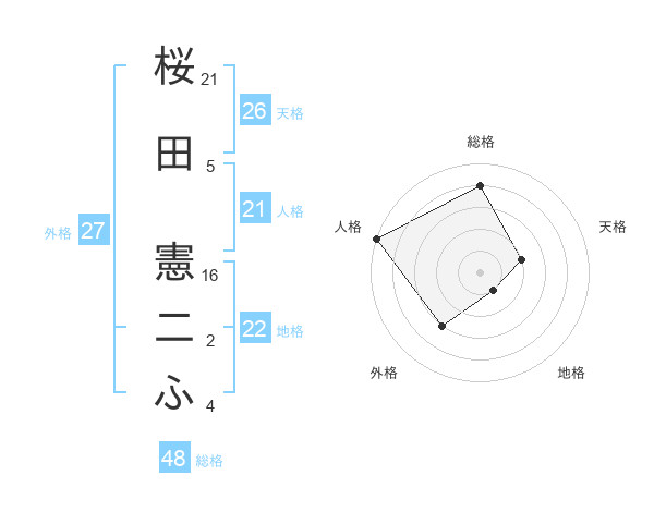 桜田 憲二ふさんを姓名の画数から五運を鑑定