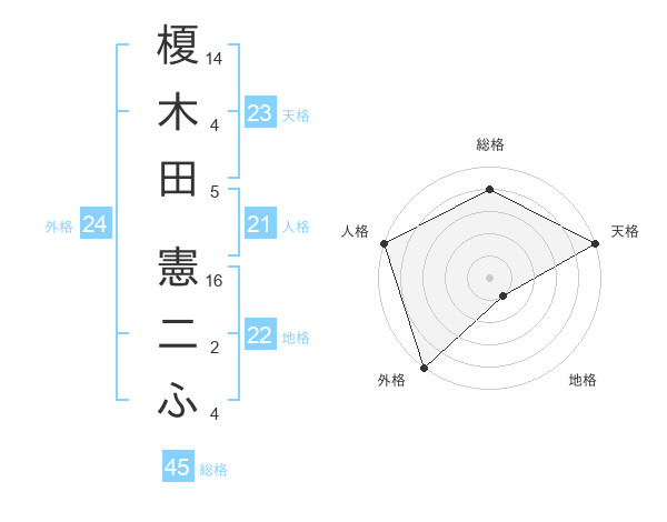 榎木田 憲二ふさんを姓名の画数から五運を鑑定
