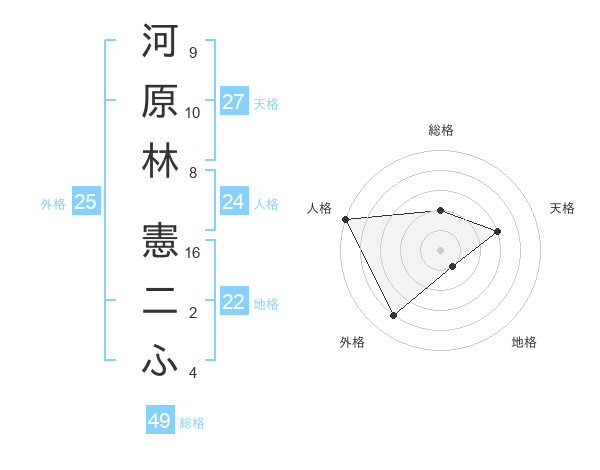 河原林 憲二ふさんを姓名の画数から五運を鑑定