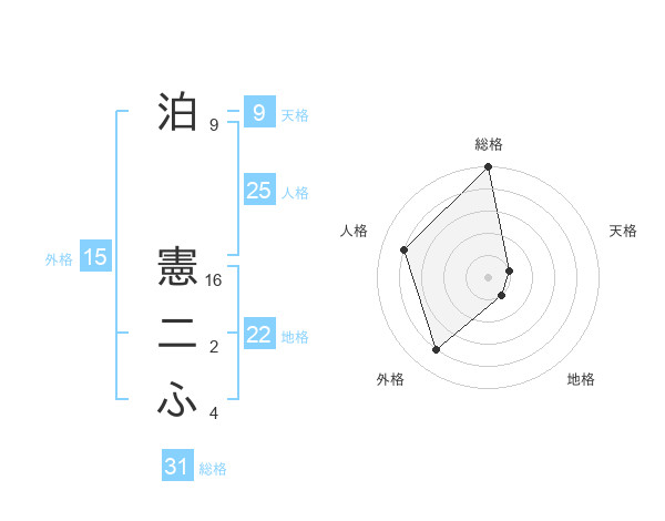 泊 憲二ふさんを姓名の画数から五運を鑑定