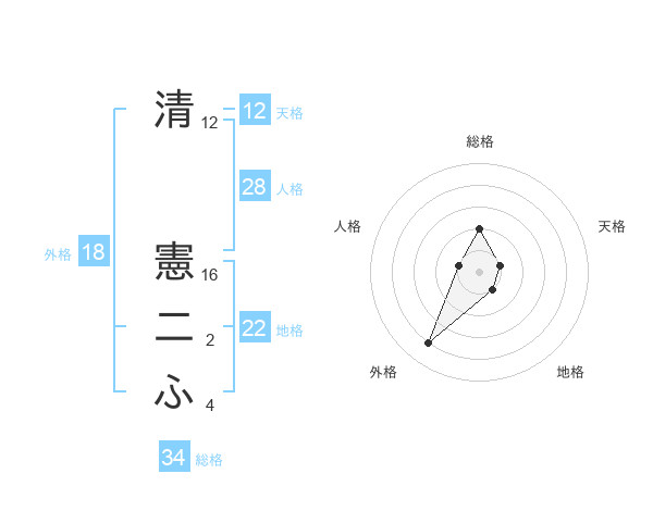 清 憲二ふさんを姓名の画数から五運を鑑定