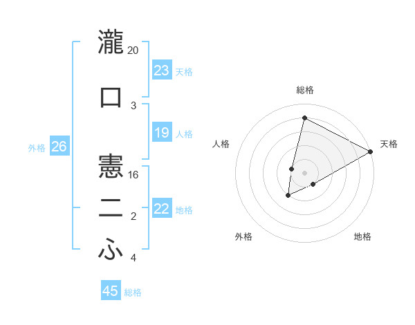 瀧口 憲二ふさんの総格は45画の4点!