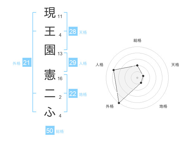 現王園 憲二ふさんを姓名の画数から五運を鑑定