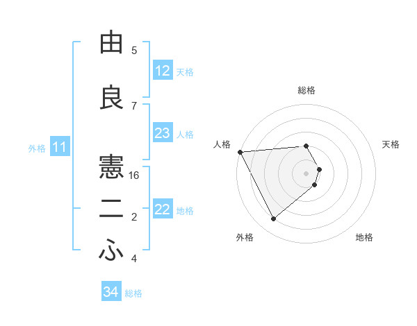 由良 憲二ふさんを姓名の画数から五運を鑑定
