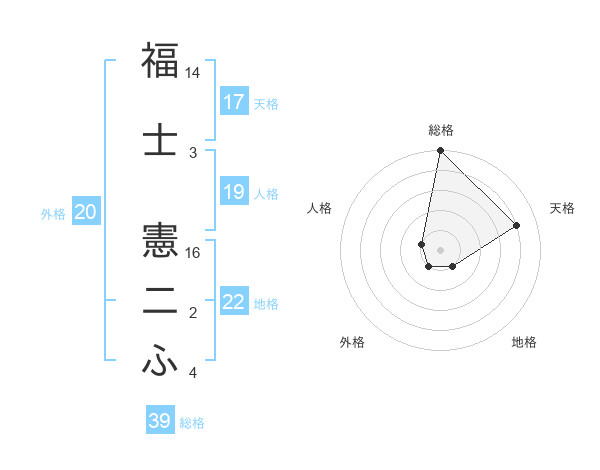 福士 憲二ふさんを姓名の画数から五運を鑑定