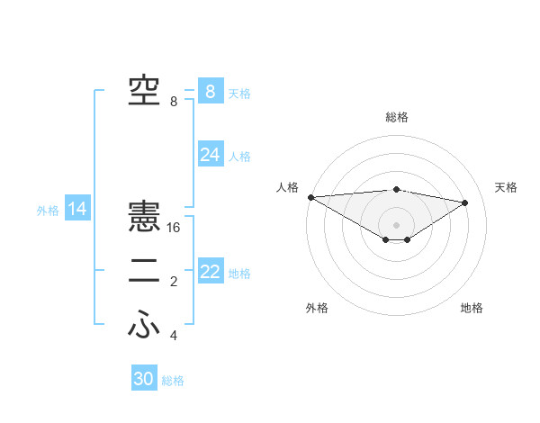 空 憲二ふさんの地格は22画の1点!