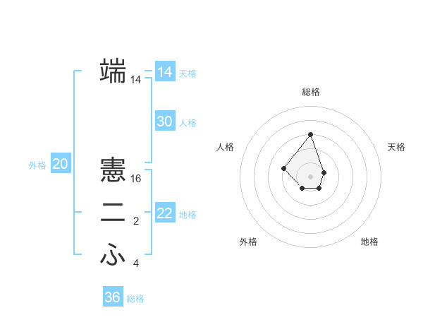 端 憲二ふさんを姓名の画数から五運を鑑定