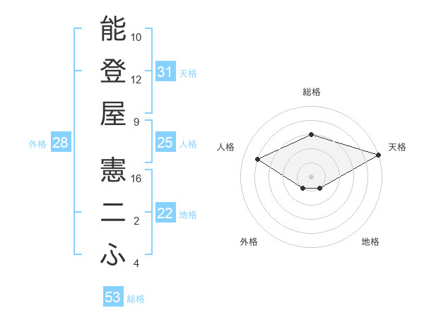 能登屋 憲二ふさんの総格は53画の3点!