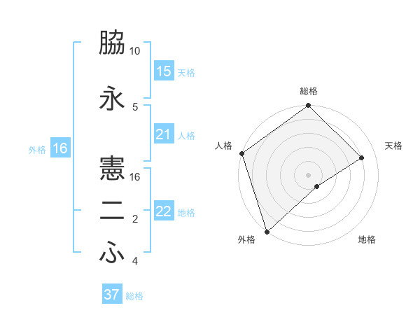 脇永 憲二ふさんを姓名の画数から五運を鑑定