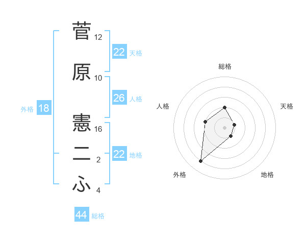 菅原 憲二ふさんを姓名の画数から五運を鑑定