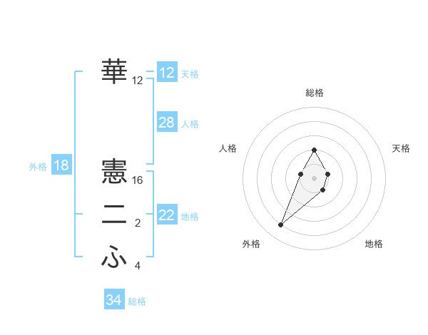 華 憲二ふさんを姓名の画数から五運を鑑定