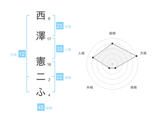 西澤 憲二ふさんを姓名の画数から五運を鑑定