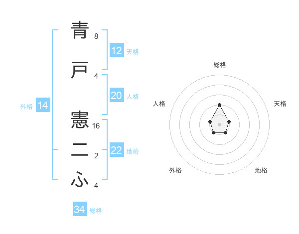 青戸 憲二ふさんを姓名の画数から五運を鑑定