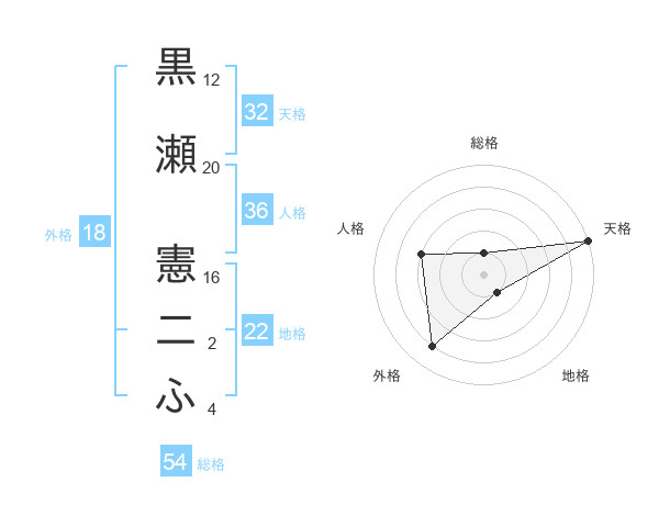 黒瀬 憲二ふさんを姓名の画数から五運を鑑定