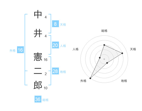 中井 憲二郎さんの天格は8画の4点!
