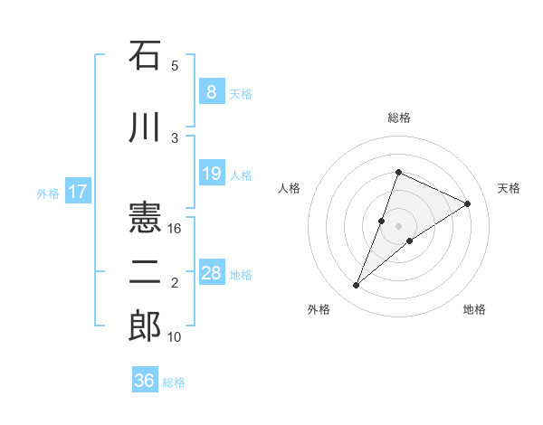 石川 憲二郎さんを姓名の画数から五運を鑑定