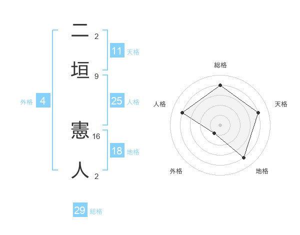 二垣 憲人さんを姓名の画数から五運を鑑定