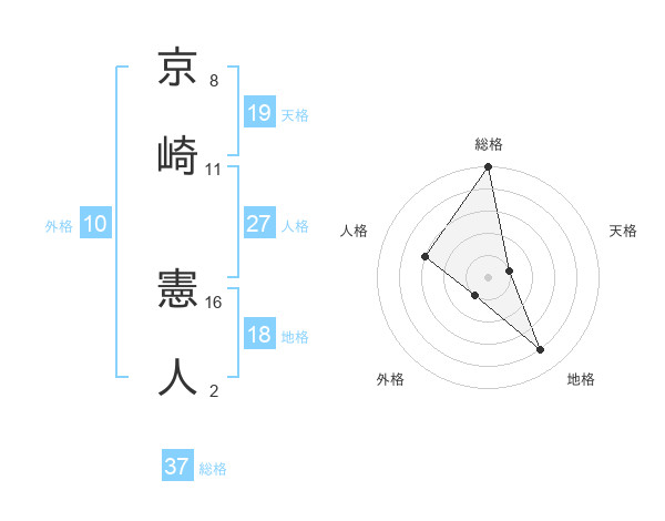 京崎 憲人さんの総格は37画の5点!