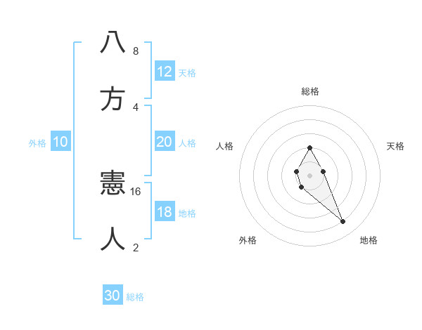 八方 憲人さんの総格は30画の2点!