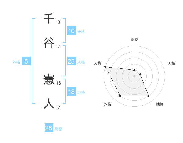 千谷 憲人さんを姓名の画数から五運を鑑定