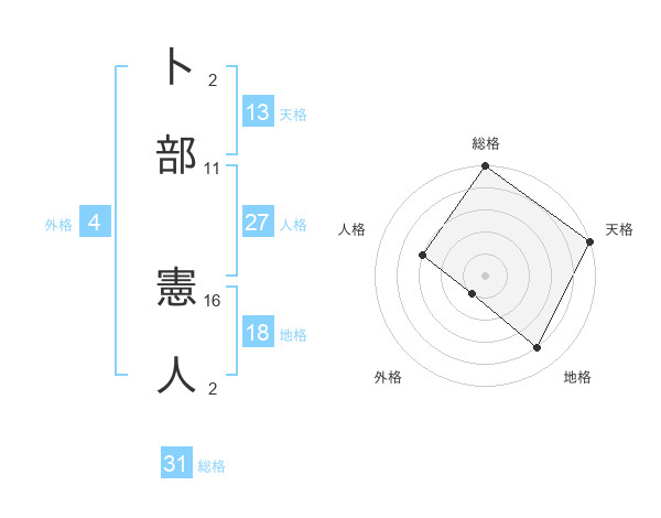 卜部 憲人さんを姓名の画数から五運を鑑定