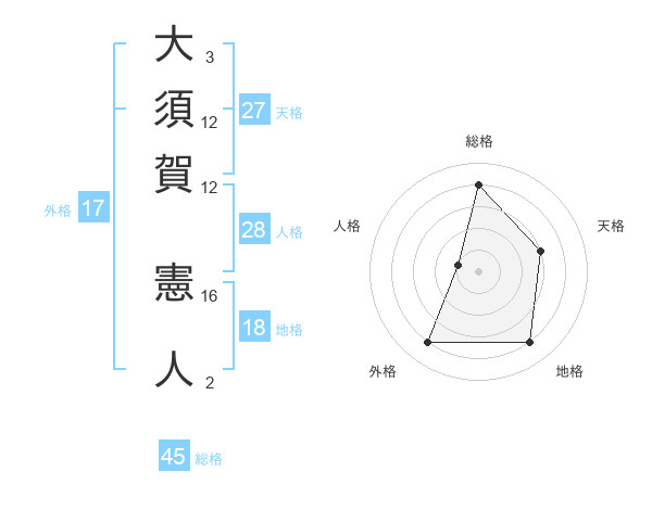 大須賀 憲人さんの総格は45画の4点!