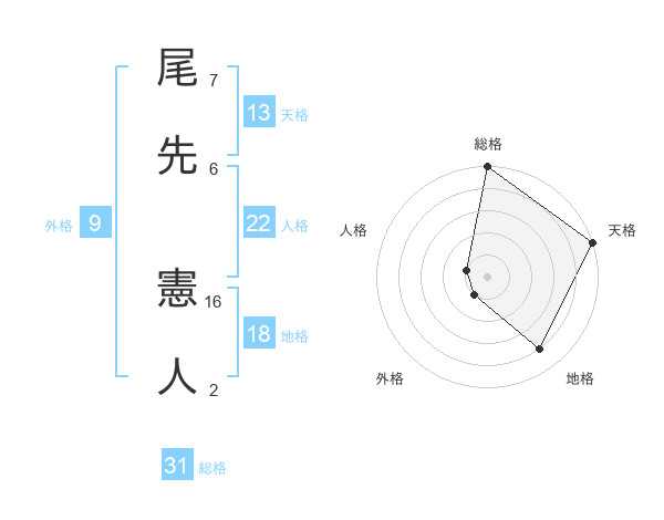 尾先 憲人さんの総格は31画の5点!