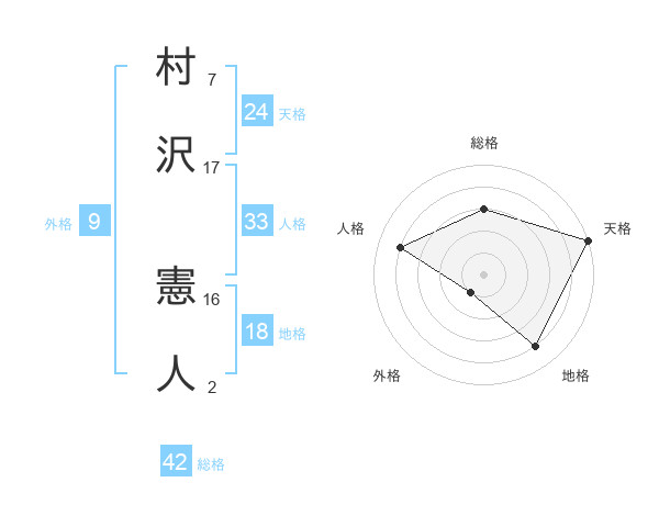 村沢 憲人さんの総格は42画の3点!