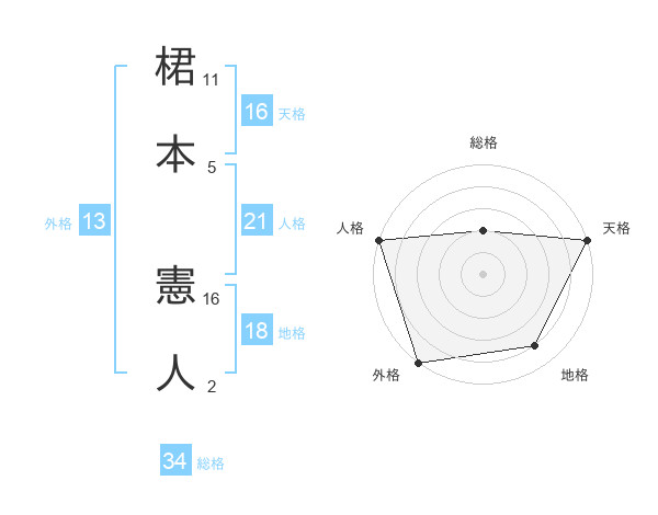 桾本 憲人さんを姓名の画数から五運を鑑定