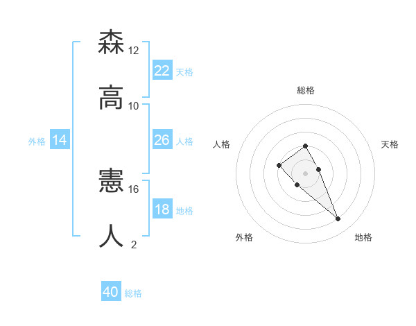 森高 憲人さんの総格は40画の2点!