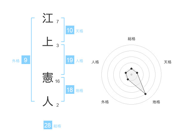 江上 憲人さんの総格は28画の1点!