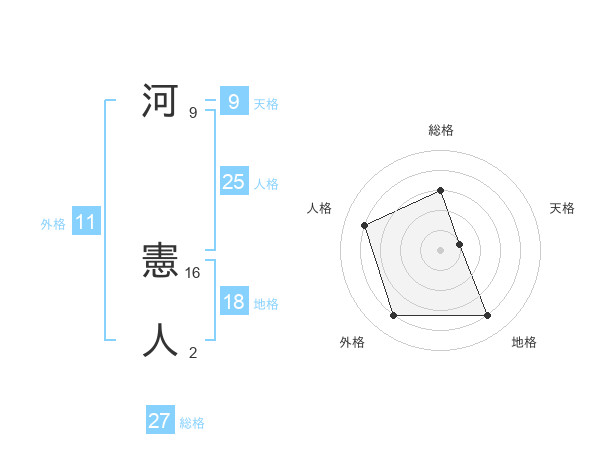 河 憲人さんの総格は27画の3点!