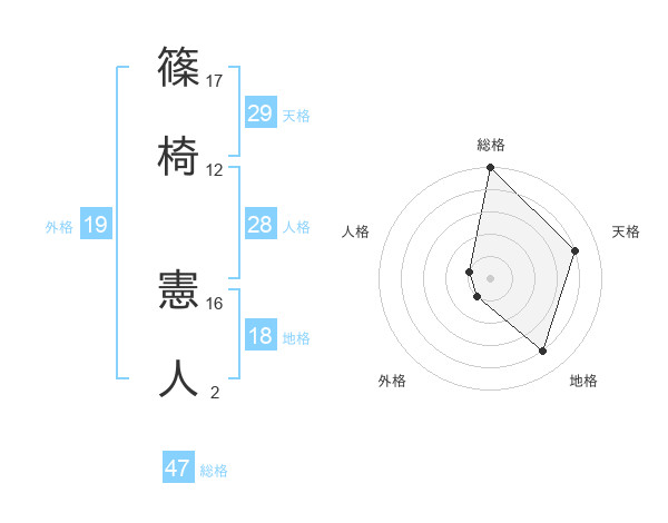 篠椅 憲人さんの総格は47画の5点!