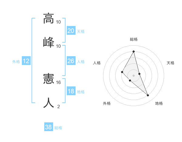 高峰 憲人さんを姓名の画数から五運を鑑定