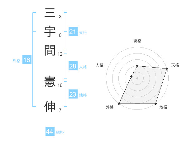 三宇間 憲伸さんを姓名の画数から五運を鑑定