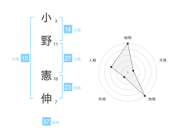 小野 憲伸さんを姓名の画数から五運を鑑定
