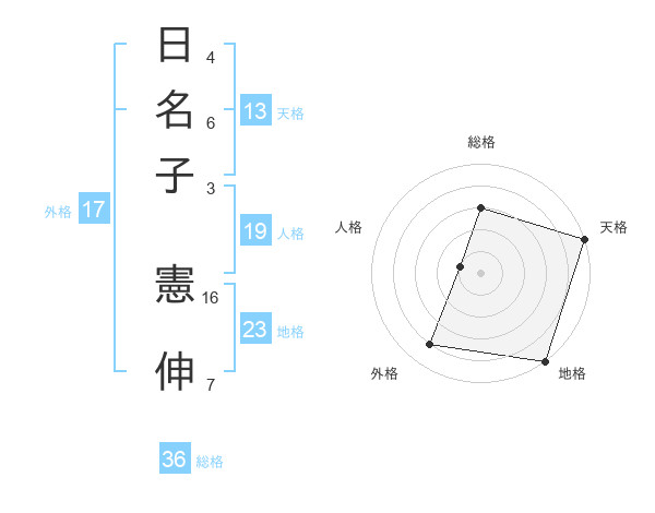 日名子 憲伸さんを姓名の画数から五運を鑑定