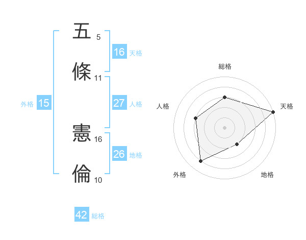 五條 憲倫さんの天格は16画の5点!