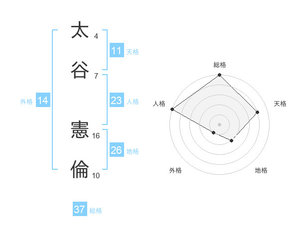 太谷 憲倫さんを姓名の画数から五運を鑑定