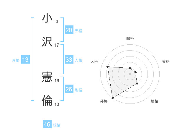 小沢 憲倫さんを姓名の画数から五運を鑑定