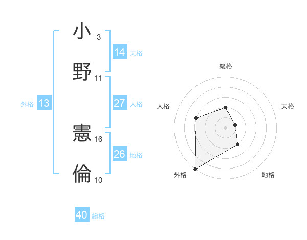 小野 憲倫さんを姓名の画数から五運を鑑定