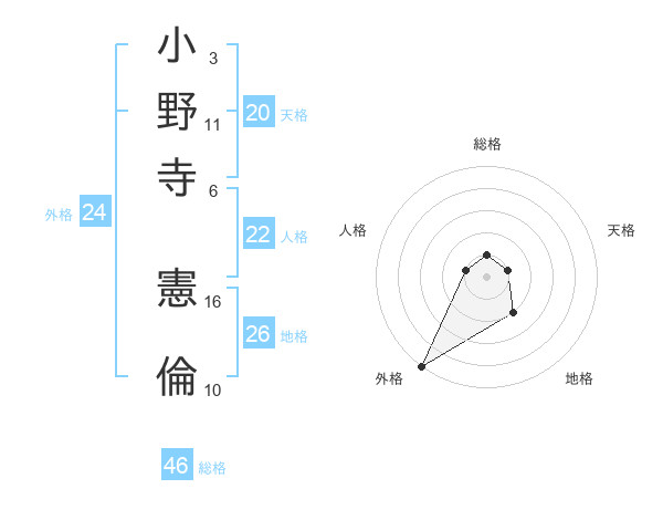 小野寺 憲倫さんの外格は24画の5点!