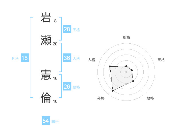 岩瀬 憲倫さんの総格は54画の1点!