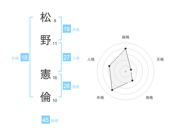 松野 憲倫さんの総格は45画の4点!
