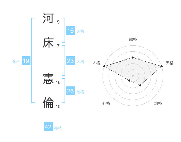 河床 憲倫さんを姓名の画数から五運を鑑定