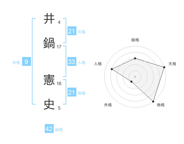 井鍋 憲史さんの総格は42画の3点!