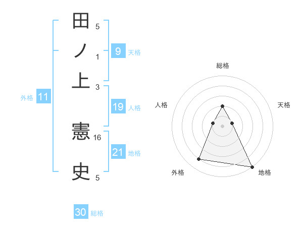 田ノ上 憲史さんを姓名の画数から五運を鑑定
