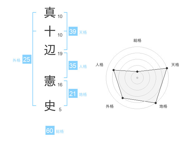 真十辺 憲史さんの総格は60画の1点!