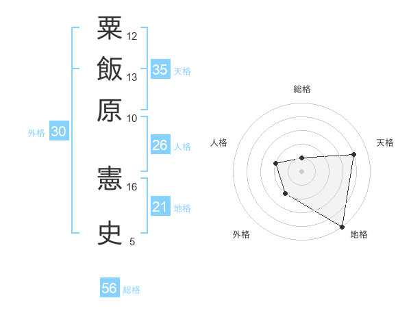 粟飯原 憲史さんを姓名の画数から五運を鑑定